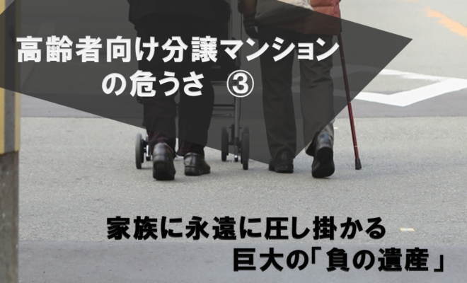 高齢者向け分譲マンションは、分譲時の価格は近隣の同程度の面積の一般分譲マンションよりも高額であるものの、対象者が一部に限定されるため、中古の売却価格は低くなる。そもそも、一般の不動産屋が不動産管理や売却仲介をしてくれるかどうかもわからないし、管理費・修繕費が高額であるため、賃貸に出しても、それをカバーするだけの賃料を取ることは難しい。そもそも、 マーケットやルートがないため、「借り手」を探すこともできないだろう。